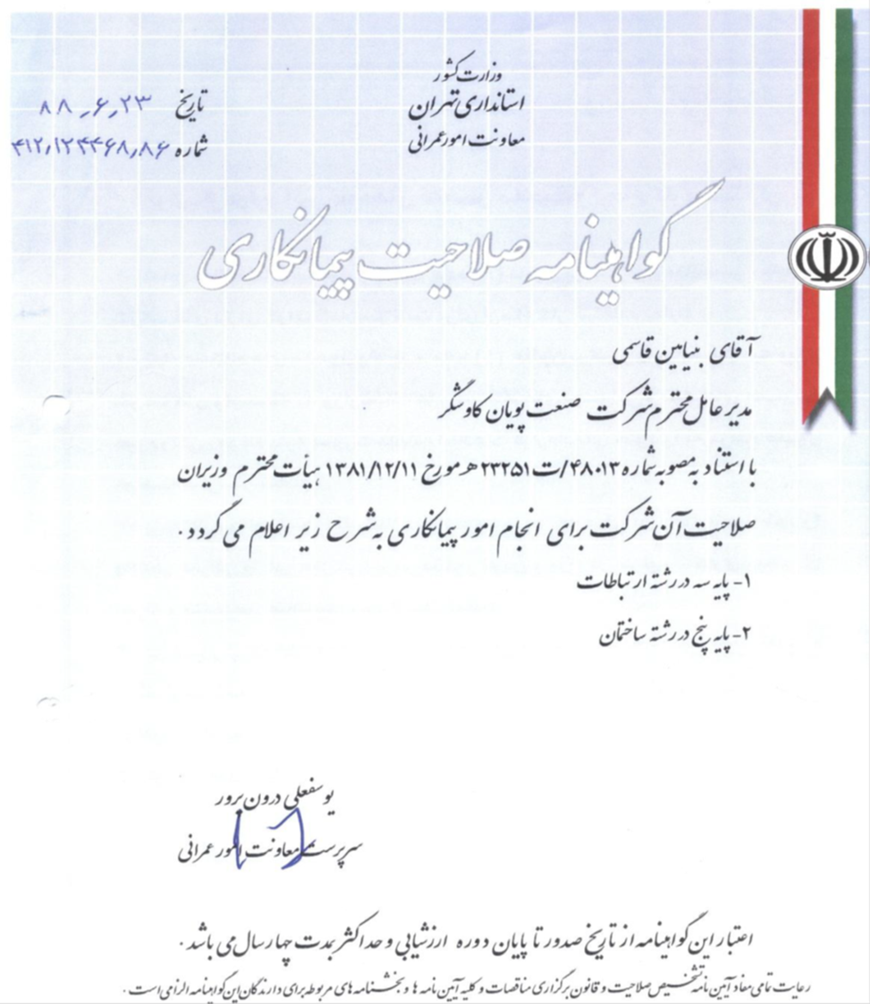 صلاحیت پیمانکاری ارتباطات و ساختمان